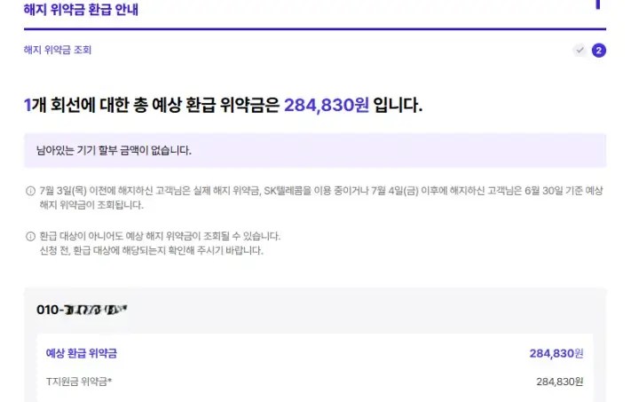 이미 납부한 위약금 | 해지 시 납부한 위약금도 환급 가능 |